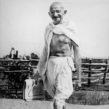 Mahatma Gandhi photographed at the Sevagram Ashram.